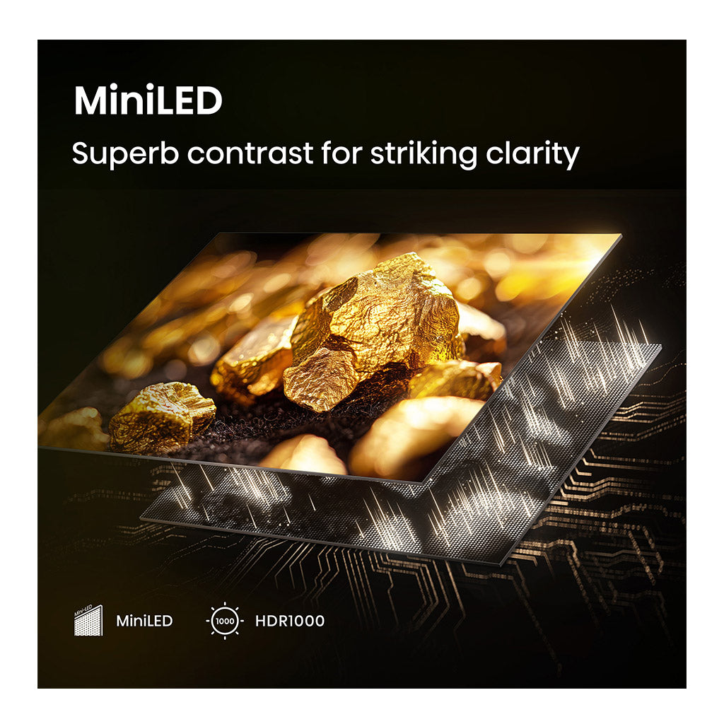 Mini-LED technology elevates your viewing experience, bringing vibrant brightness to life while revealing deep, rich shadows with striking clarity.