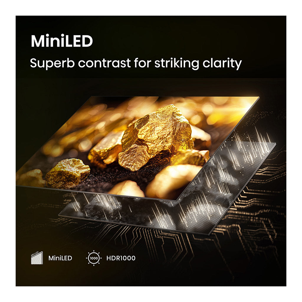 Mini-LED technology elevates your viewing experience, bringing vibrant brightness to life while revealing deep, rich shadows with striking clarity.