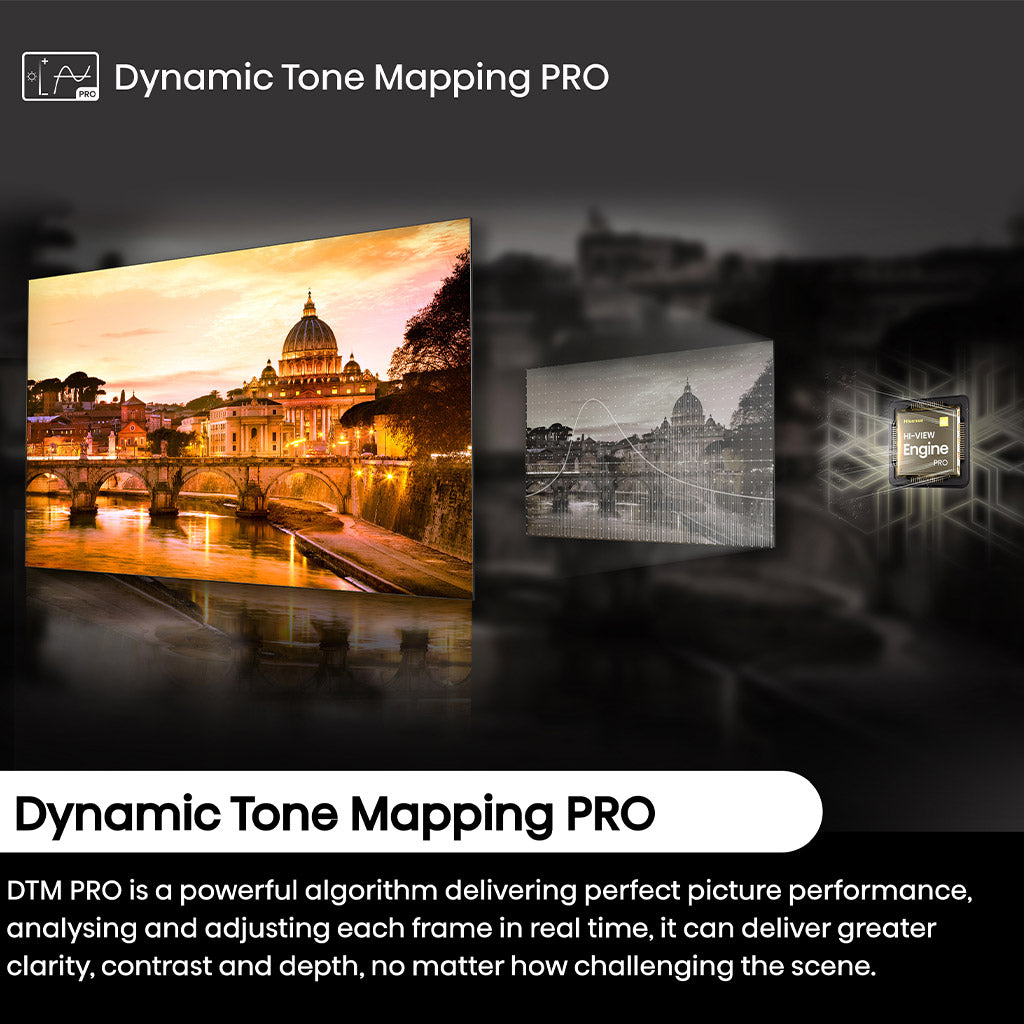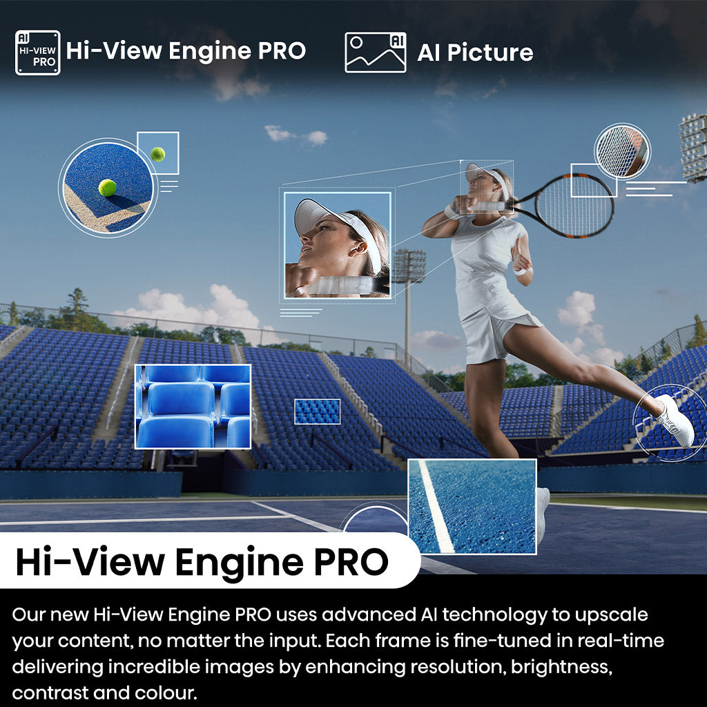 Hisense new Hi-View Engine PRO uses advanced AI technology to upscale your content, no matter the input. Each frame is fine-tuned in real-time to bring you the best possible picture by enhancing resolution, brightness, contrast and colour. You'll enjoy a 4K quality image with sharpness, clarity and a lifelike detail.