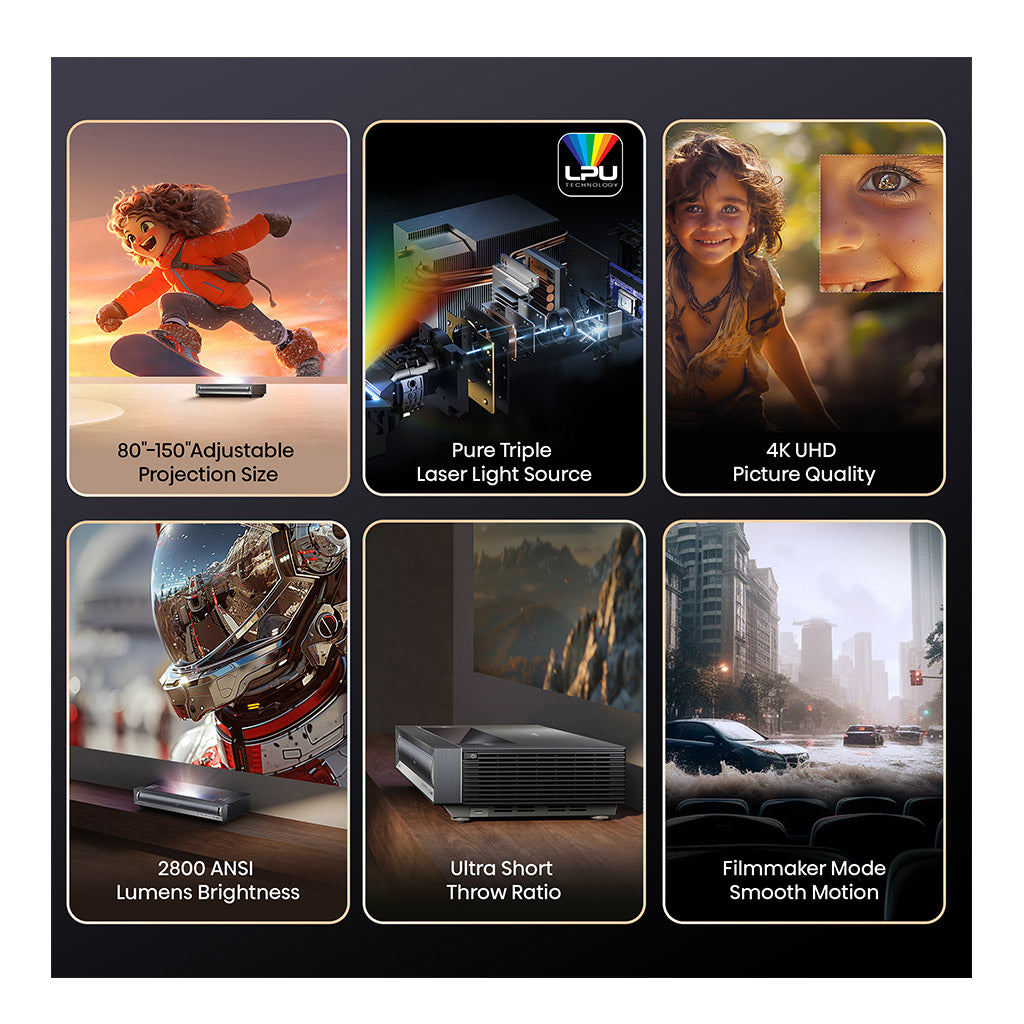 Project in 4k from 80” – 150”, giving you the ultimate home cinema experience not matter the size of wall you have.