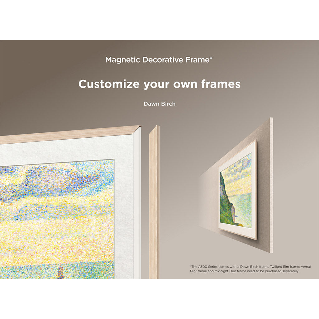 Allows to create your own atmosphere and blends seamlessly with your home decor by functioning as both a television and a piece of art. It features a private ART gallery for free with ‘’Ai’’ Art **, an ambient relaxation mode, customizable Magnetic Decorative Frames*, and offers freedom of placement at home (3 different ways to configure position***).